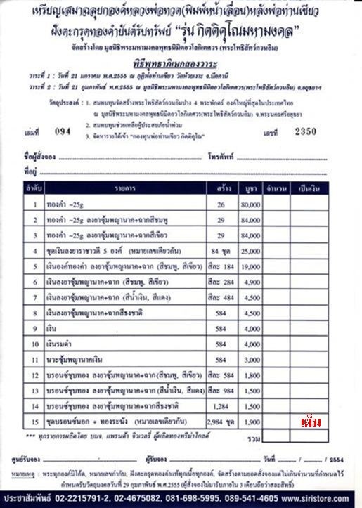 ทุกรายการกรุณาช่วยค่าจัดส่ง 100 บาท เป็นค่าจัดส่งใบจองตัวจริงจากศูนย์พระเครื่อง +จัดส่งวัตถุมงคลค่ะ