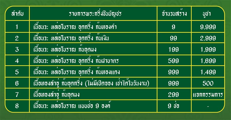 เนื้อทองลำอู่ ราคาวัด 500 บาท สร้าง 999 องค์ (สามารถฝากบูชาได้่ ปกติไม่มีเปิดจอง)