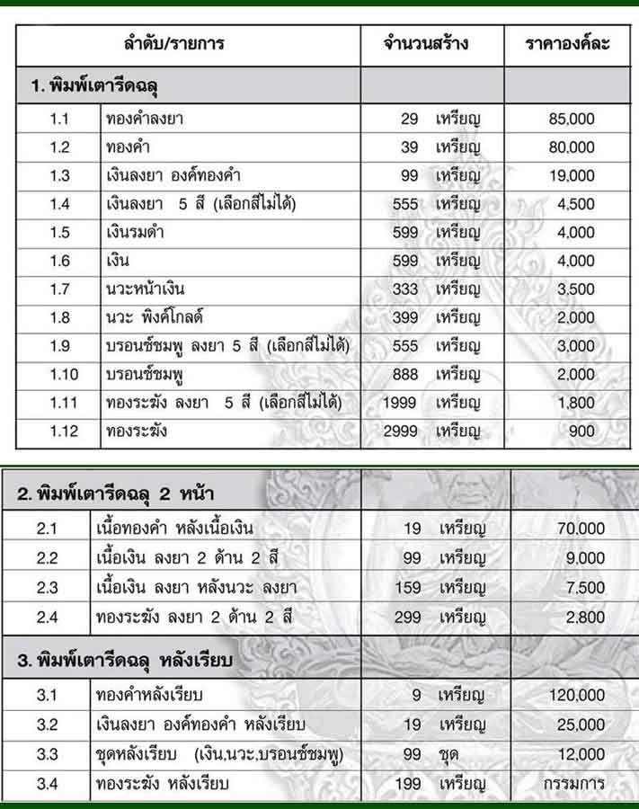 มีรายการเปิดจองดังนี้