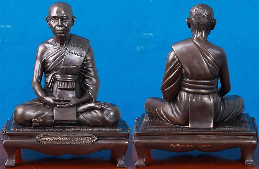 พระบูชารูปหล่อ หลวงปู่บัว 9 นิ้ว รุ่น 63 พรรษา ถามโก เนื้อทองเหลืองรมดำ สร้าง 999 องค์