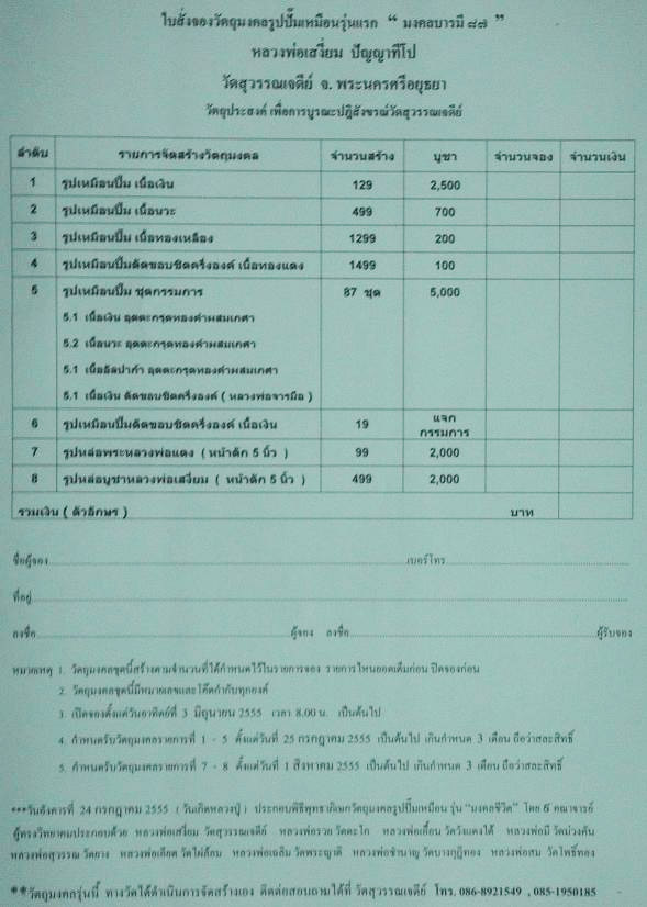- เนื้อนวะโลหะ สร้าง 499 องค์ องค์ละ 1,000.- มีจำนวน 1 องค์
