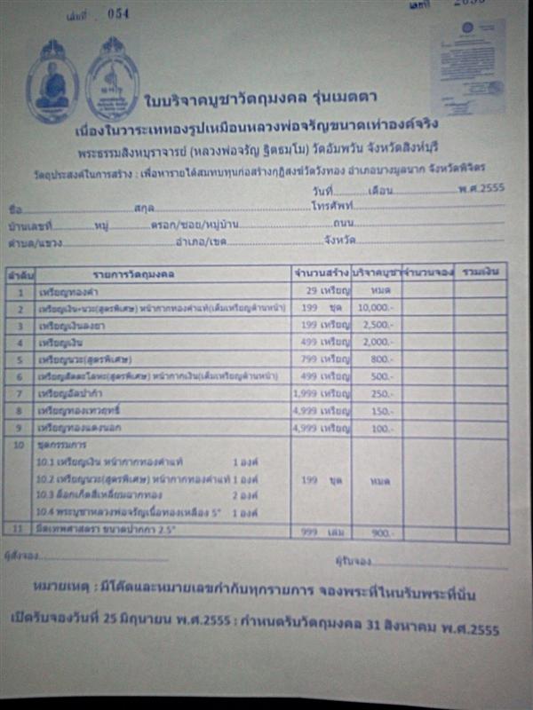 กำหนดรับวัตถุมงคล วันที่ 31 สิงหาคม 2555 หรือโทรถาม