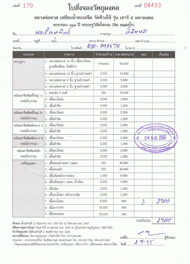 ชื่อบัญชีธนาคาร : นายวิษณุพันธุ์ นิมิตพารา