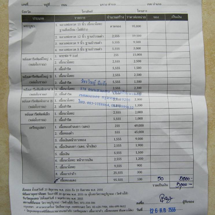 ใบจองตัวจริงจากวัดเอี่ยม มียอดจริง ได้พระแน่นอน นอนหลับฝันดี ไม่มีผวา