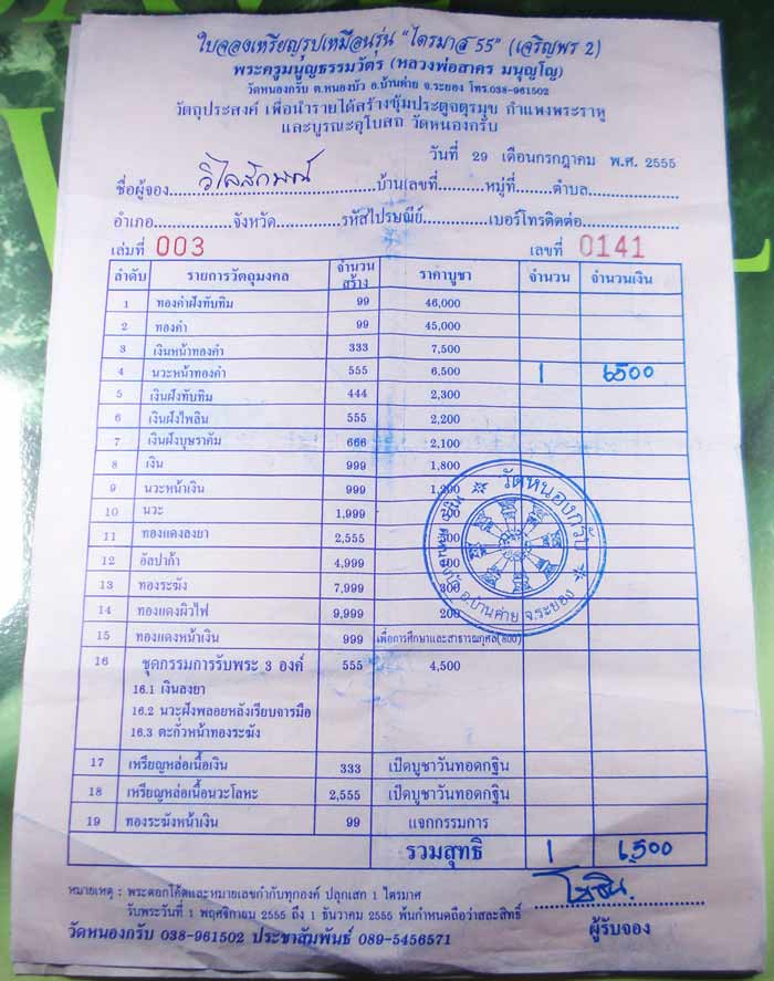 รวมค่าจัดส่ง(จัดส่งใบจองตัวจริงให้เลยครับ)