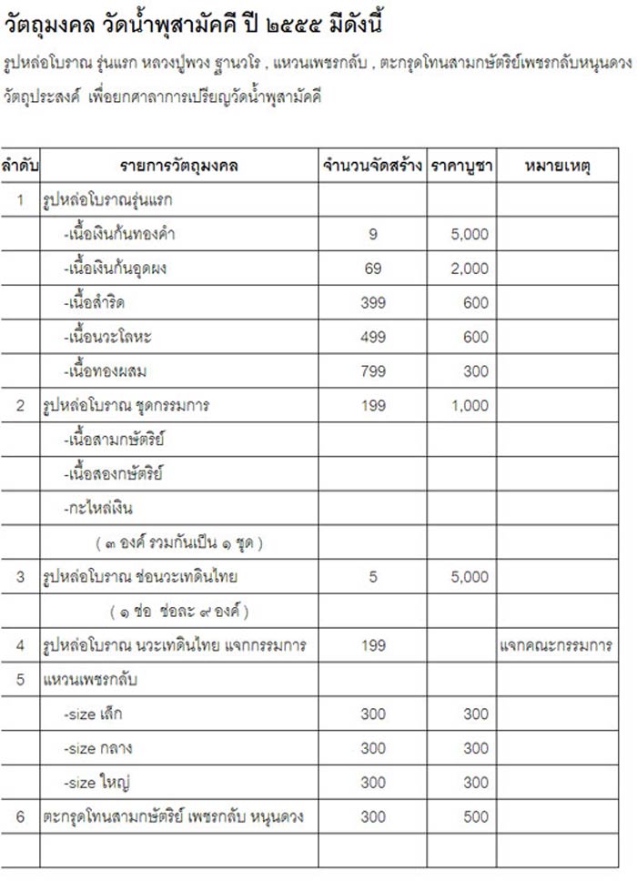 ผมได้ยอดมาแบ่งพี่ๆ เพื่อนๆ น้องๆ ในเว็บเล็กน้อย ในราคาวัด บวกค่าส่ง ดังนี้ครับ