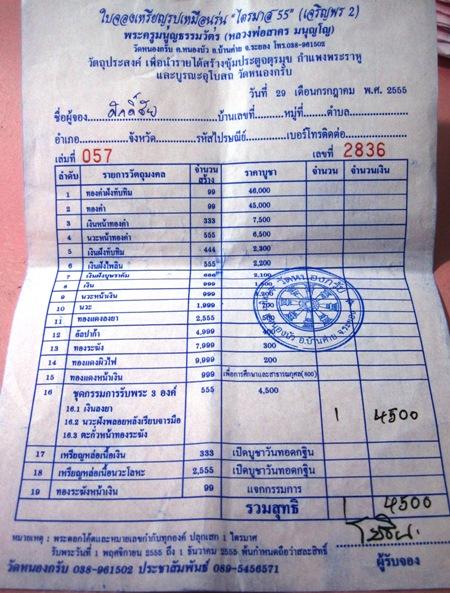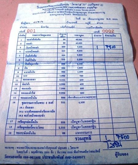 ....จัดส่งใบจองให้ไปรับพระเองที่วัดนะครับ....