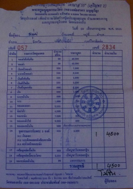 ชุดกรรมการ รับพระ ๓ องค์ มียอด ๒ ชุด ๆ ละ ๙,ooo บาท