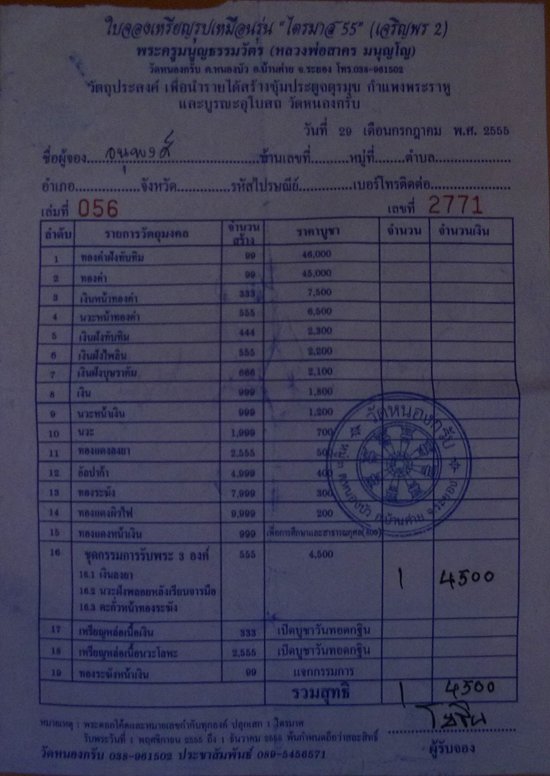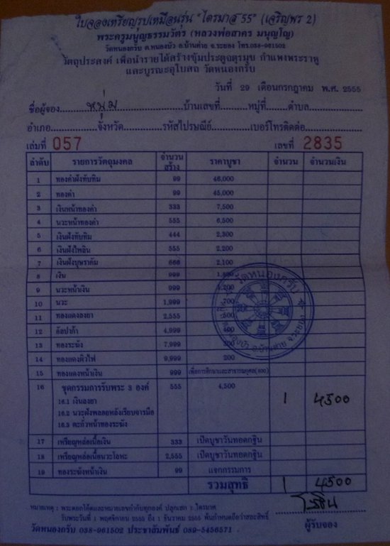 ชุดกรรมการ รับพระ ๓ องค์ มียอด ๒ ชุด ๆ ละ ๙,ooo บาท