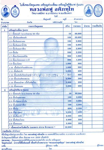7. เนื้อทองนำพา (เนื้อใบพัดเรือ) สร้าง 3999 เหรียญ มี 35 เหรียญๆละ 450