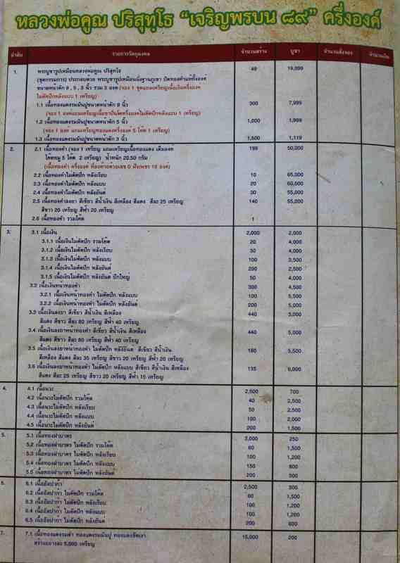 เนื้อเงิน 1 เหรียญ เนื้อนวะ 1 เหรียญ เนื้อทองฝาบาตร 1 เหรียญ เนื้ออัลปาก้า 1 เหรียญ เนื้อทองแดงขัดเงา 1 เหรียญ เนื้อทองแดงรมดำ 1 เหรียญ และเนื้อทองแดงมันปู 1 เหรียญ รวมทั้งหมด 7 เหรียญ = 9,500 บาท