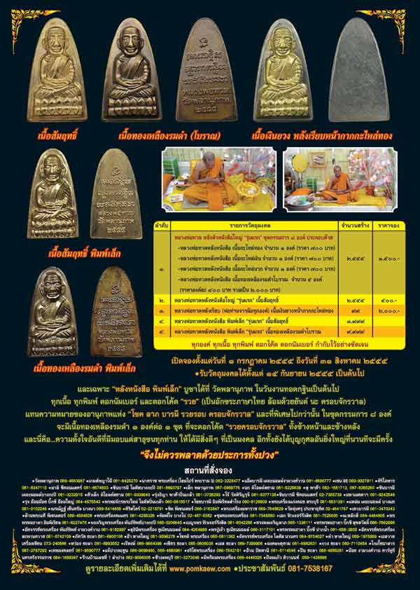 2. หลังหนังสือ รุ่นแรก เนื้อสัมฤทธิ์ สร้าง 2555 องค์ๆมี 10 องค์ๆละ 500 บาท