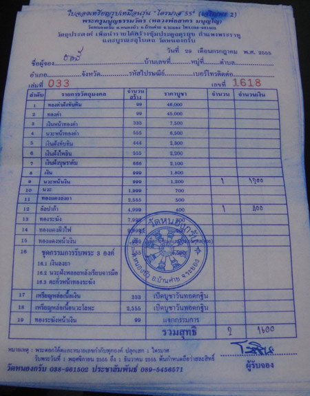 (จัดส่งใบให้ฟรีครับ...นำใบจองรไปรับพระเองนะครับ)