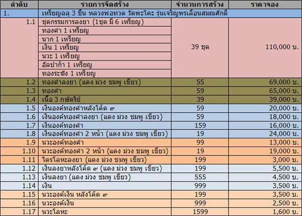 1.เนื้อทองคำ มียอด 1 เหรียญ เหรียญละ 90,000 บาท