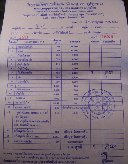(จัดส่งใบให้ฟรีครับ...นำใบจองรไปรับพระเองนะครับ)