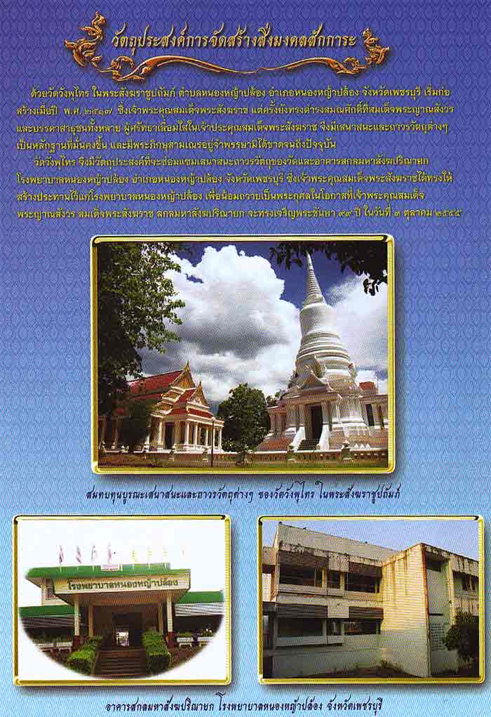 1. สมทบทุนบูรณะ เสนาสนะและถาวรวัตถุต่างๆ ของวัดวังพุไทร ในพระสังฆราชาชูปถัมภ์