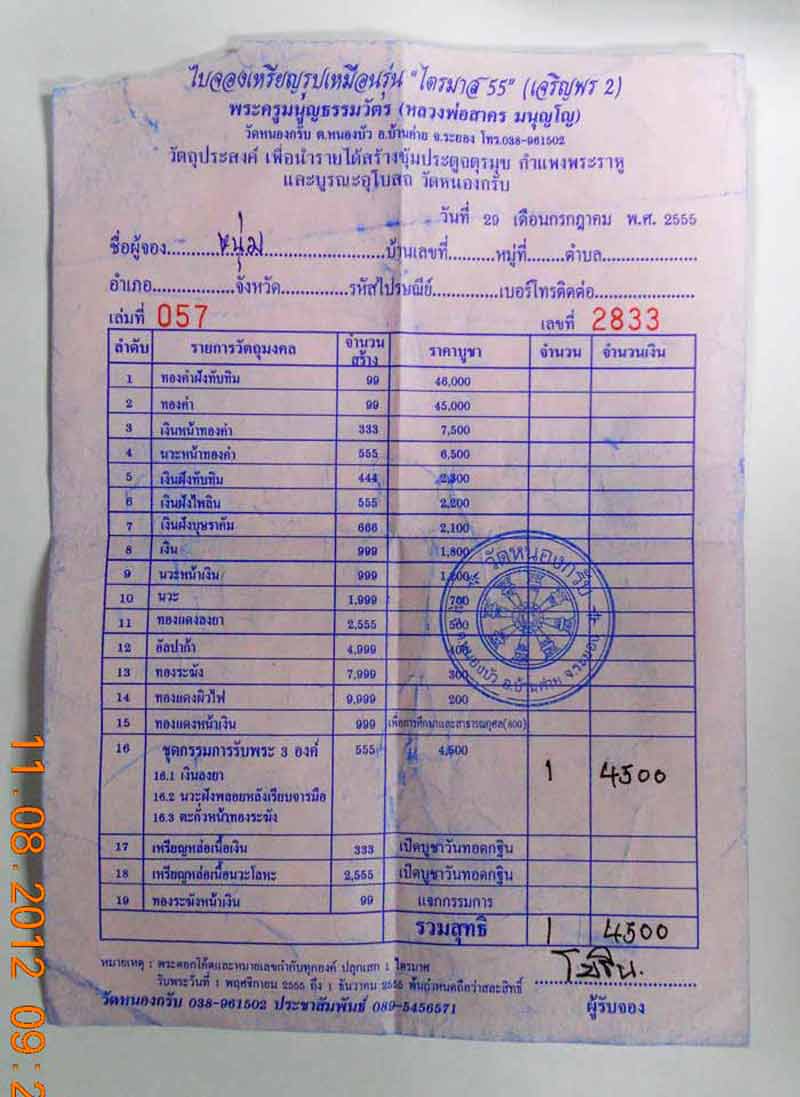 | หัวข้อกระทู้ : ด่วนๆๆ....ใบจอง เหรียญไตมาส 55 (เจริญพร2) ลพ.สาคร แยกชุดกรรมการ |