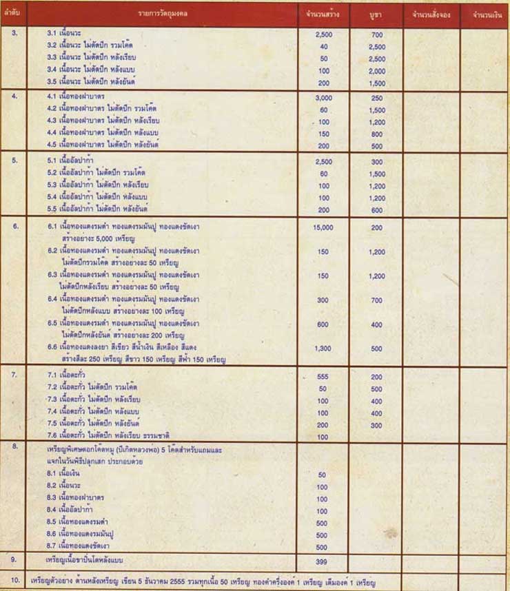 " ครึ่งองค์ " เนื้อทองแดงลงยา ครึ่งองค์ สร้างสีละ 250 เหรียญ ( จัดให้เข้าชุด 1 ชุด 4 เหรียญ 4 สี )- สีเขียว - สีน้ำเงิน - สีเหลือง - สีแดง มี 1 ชุด ( ราคา 5,000 บ )