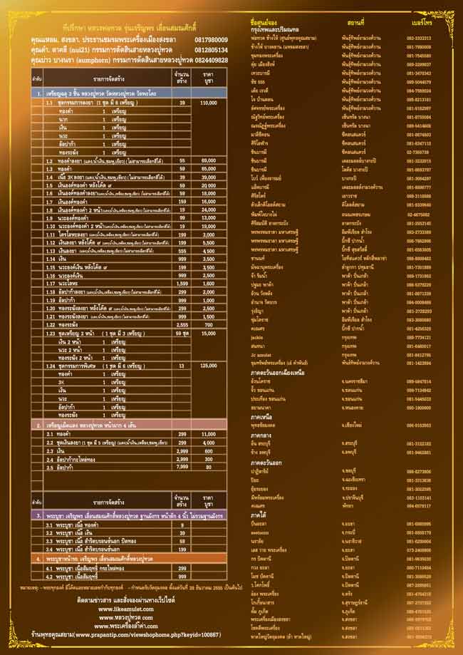 - เนื้อเงินองค์ทองคำ มียอด 1 เหรียญ ให้บูชาเหรียญละ 17,000 บาท