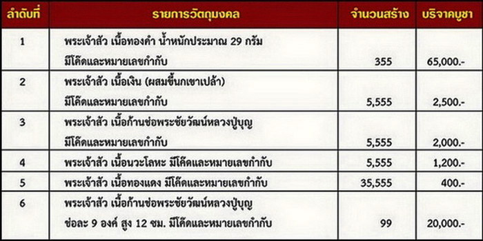 - เนื้อนวะ มียอด 100 เหรียญ ให้บูชาเหรียญละ 1,800 บาท