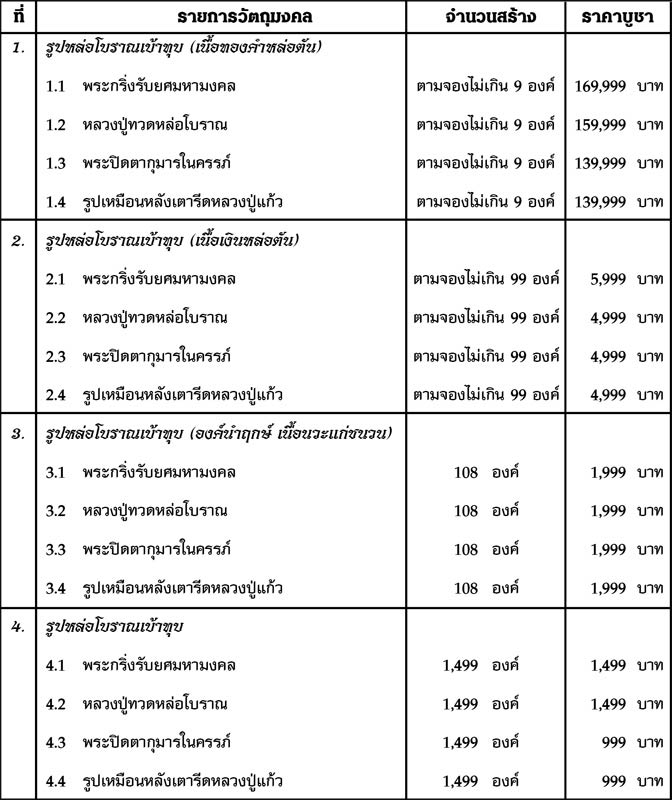 สั่งจองได้แล้วตั้งแต่วันนี้เป็นต้นไปครับ โดยเฉพาะชุดนำฤกษ์ ที่สร้างเพียงแค่ 108 ชุด ไม่ควรพลาดเป็นอย่างยิ่ง เพราะรวบรวมชนวนมวลสารที่ทั้งเยอะและพิเศษสุดๆ เข้าไว้ด้วยกัน