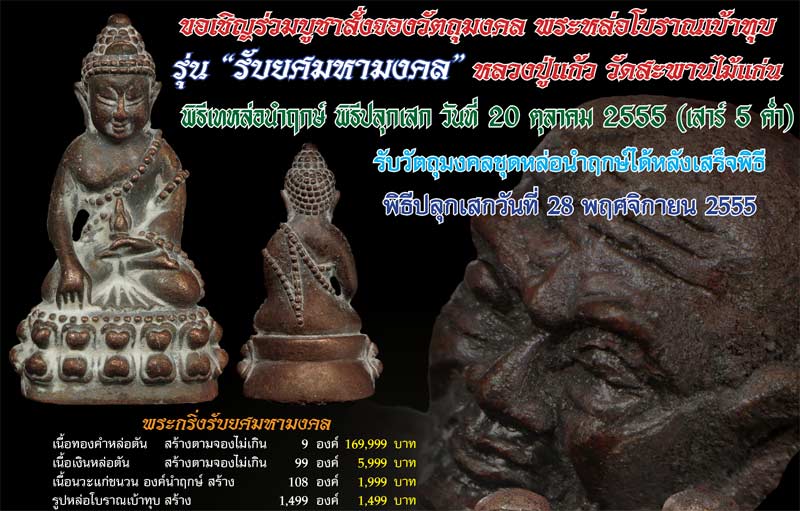 วัตถุมงคลรุ่นนี้ออกในนามวัดสะพานไม้แก่น ทางวัดเป็นผู้จัดสร้างเองทั้งหมด รายได้ทั้งหมดจึงเข้าวัดแบบเต็มๆ และที่พลาดไม่ได้ ผู้ที่ไปรว่มงานปลุกเสกเททองนำฤกษ์ ในวันที่ 20 ตุลาคม จะได้รับแจกรูปเหมือนเนื้อว่านฟรีครับ