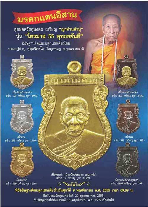 | หัวข้อกระทู้ : เปิดจองเหรียญเสมา รุ่นไตรมาส พุทธชยันตี หลวงปู่คำบุ คุตตะจิตโต |