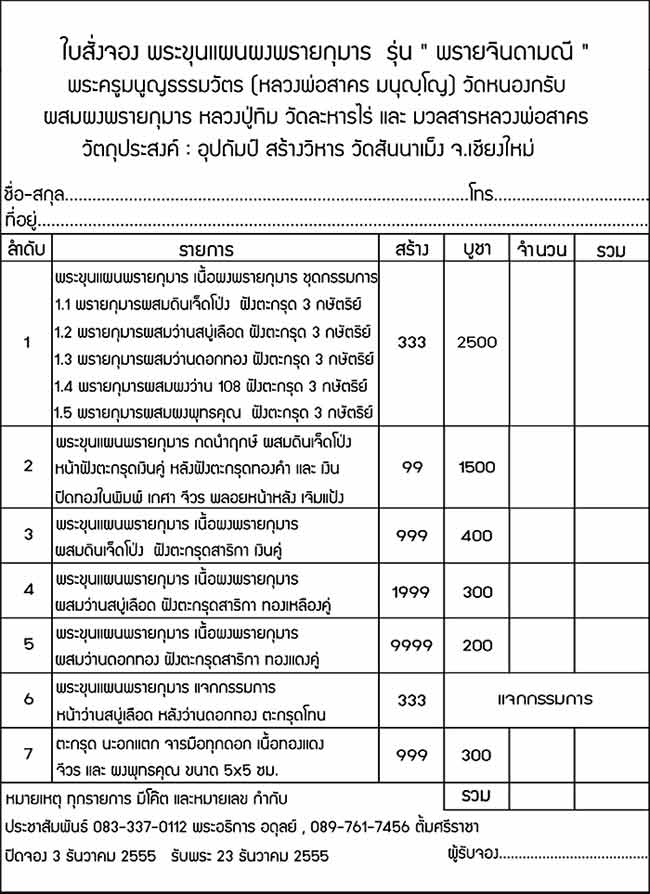 >>>>>>>>>ศูนย์จองน้องใหม่ ไฟแรง มียอดจองพระรุ่นนิยมมาแบ่งพี่ๆมี่สนใจร่วมทำบุญเพื่ออุปถัมภ์ สร้างวิหาร วัดสันนาเม็ง จ.เชียงใหม่ กันครับ<<<<<<<<<