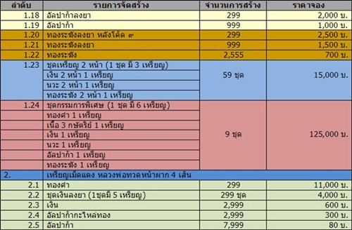 - เหรียญเม็ดแตง เนื้อเงิน มี10เหรียญๆละ 750.-บาท
