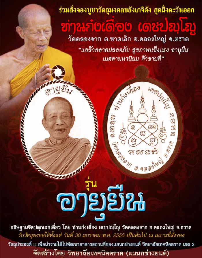 | หัวข้อกระทู้ : >> ร่วมสั่งจองเหรียญ อายุยืน ท่านก๋งเตื่อง วัดคลองจาก จ.ตราด << |