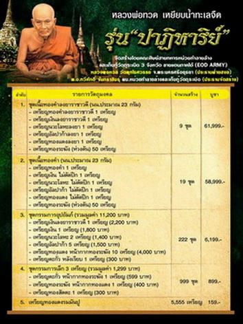 2. เหรียญทองแดงรมมันปู ชุด 5 เหรียญ ชุดละ 2500 บาท มี 2 ชุด