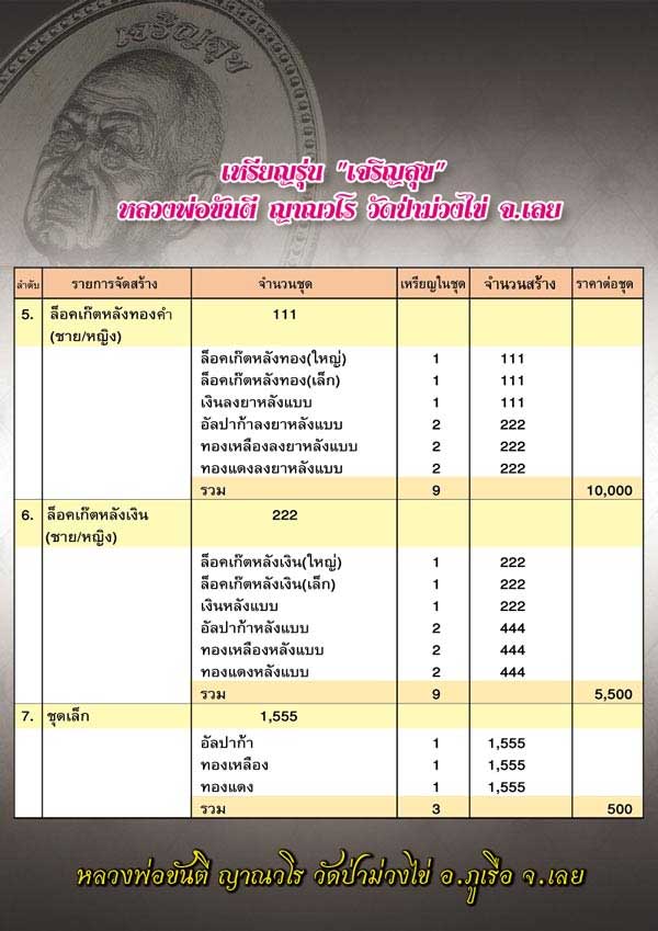 | หัวข้อกระทู้ : *****หลวงพ่อขันตี "รุ่น เจริญสุข" วัดป่าม่วงไข่ จ.เลย ชุดเล็ก***** |