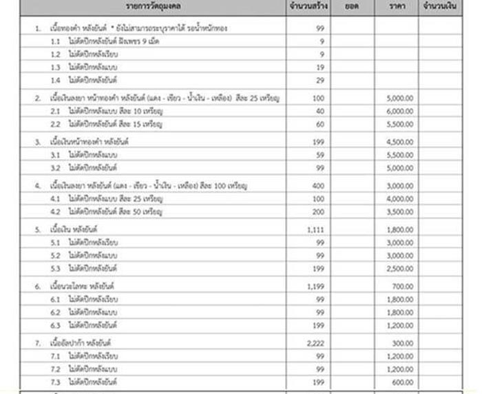 รายการที่เปิดจองมีดังนี้