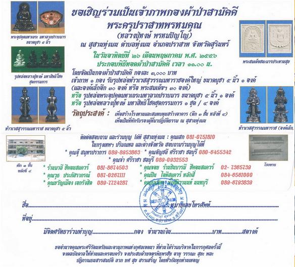 ขอเชิญท่านผู้มีจิตศรัทธาร่วมเป็นเจ้าภาพกองผ้าป่าสามัคคี