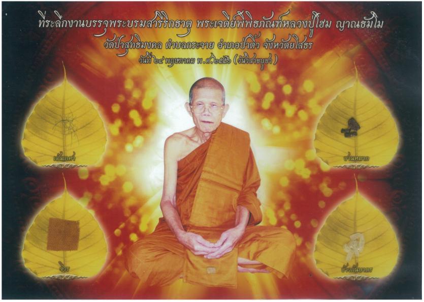 เนื่องด้วย ส.อ.ณัฐพล มีสิทธิ์ และ ศิษยานุศิษย์ ได้กราบเรียนขออนุญาติหลวงปู่โฮม ญาณธัมโม , เจ้าอาวาส ,และคณะกรรมการ เพื่อหาทุนจัดสร้างผอบทองคำ เพื่อบรรจุพระบรมสารีริกธาตุ ประดิษฐานยอดพระเจดีย์พิพิธภัณฑ์อัฐบริขารหลวงปู่โฮม ญาณธัมโม ที่สร้างเสร็จแล้วกว่า60 %