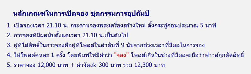 สรุปผลการจองผมจะแจ้งให้ทราบในกระทู้ที่เปิดจองและจะตั้งกระทู้แจ้งให้ทราบอีกครั้งอย่างเป็นทางการในกระดานประชาสัมพันธ์พระเครื่องพร้อมกับชุดกรรมการ 15 เหรียญ นะครับ