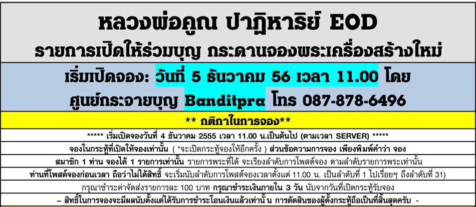 เปิดจอง..หลวงพ่อคูณ รุ่นปาฎิหาริย์ EOD ราคาจอง เวลา 11.00 น (ตามเวลา SERVER)