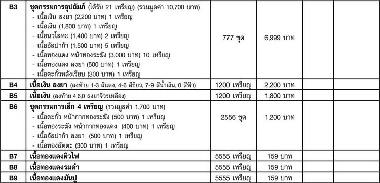 1. B3 ชุดกรรมการอุปถัมภ์ ได้รับ 21 เหรียญ ราคา 9500 บาท/ชุด มียอด 3 ชุด