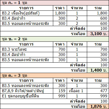 ยอดที่นำมาเปิดจอง จะมีทั้งหมด 6 ชุด ตามในตารางรายการที่ลงไว้