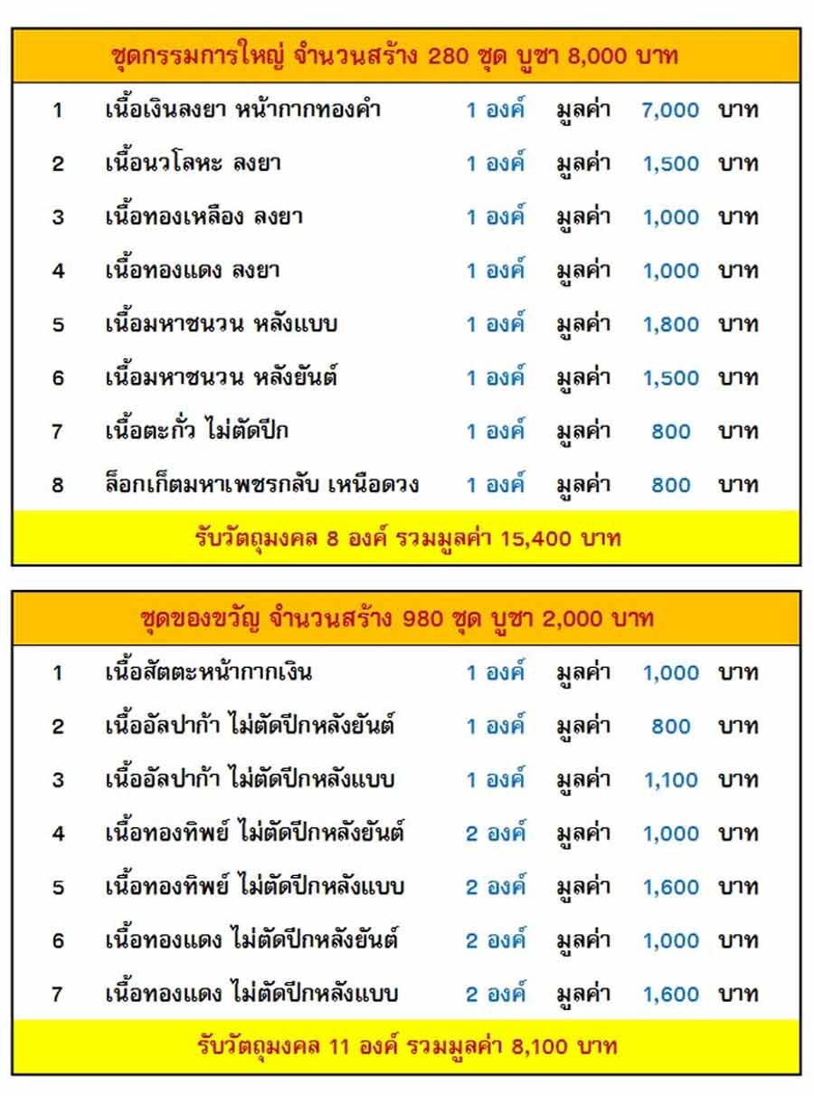 มีรายการมาให้ร่วมบุญกัน ดังนี้ครับ
