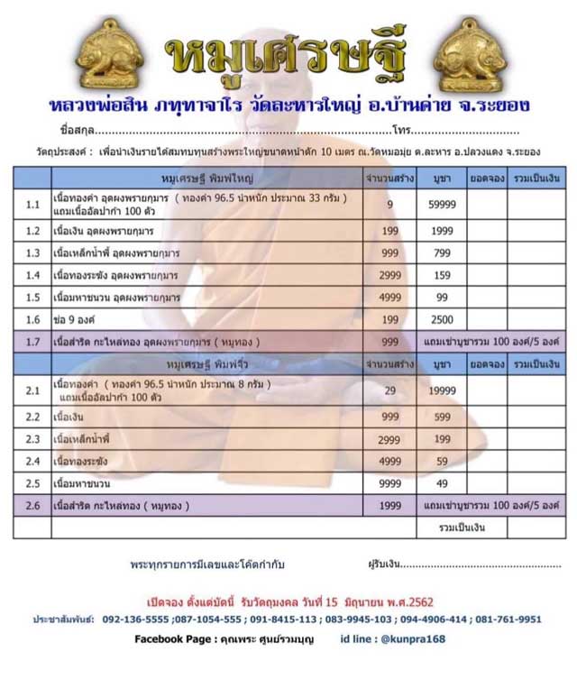 1.4 เนื้อทองระฆัง มี 10 องค์ๆละ 159 บาท