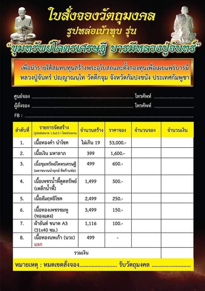 *** เปิดจอง// รูปหล่อเบ้าทุบ รุ่น "ขุมทรัพย์โคตรเศรษฐี บารมีหลวงปู่จันทร์" หลวงปู่จันทร์ ปัญญาณันโท อริยสงฆ์ ๒ แผ่นดิน ไทย-กัมพูชา