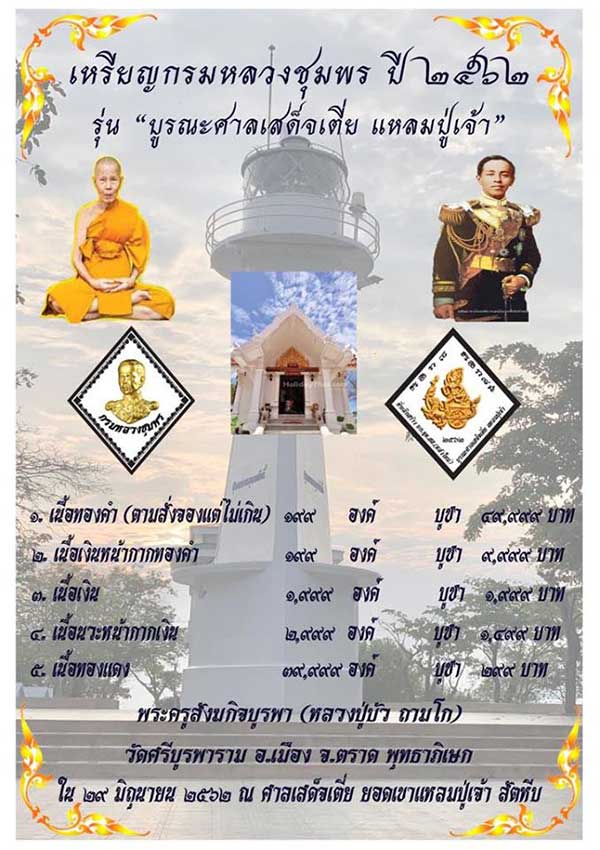 เหรียญกรมหลวงชุมพร รุ่น บูรณะศาลสมเด็จเตี่ย แหลมปู่เจ้า ปี2562