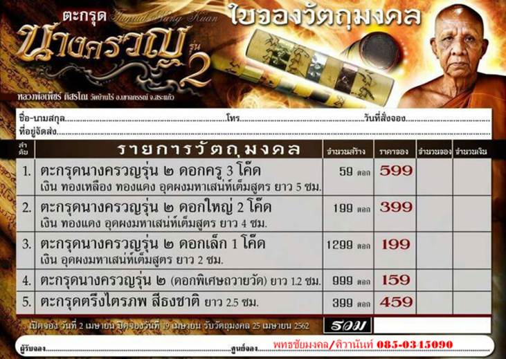 รับวัตถุมงคลประมาณ 25 เมษายน 62