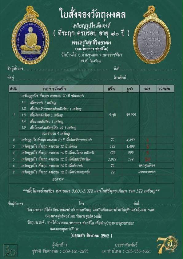 เปิดแบ่งเหรียญที่ระฤก 70ปี หลวงพ่อทอง วัดบ้านไร่