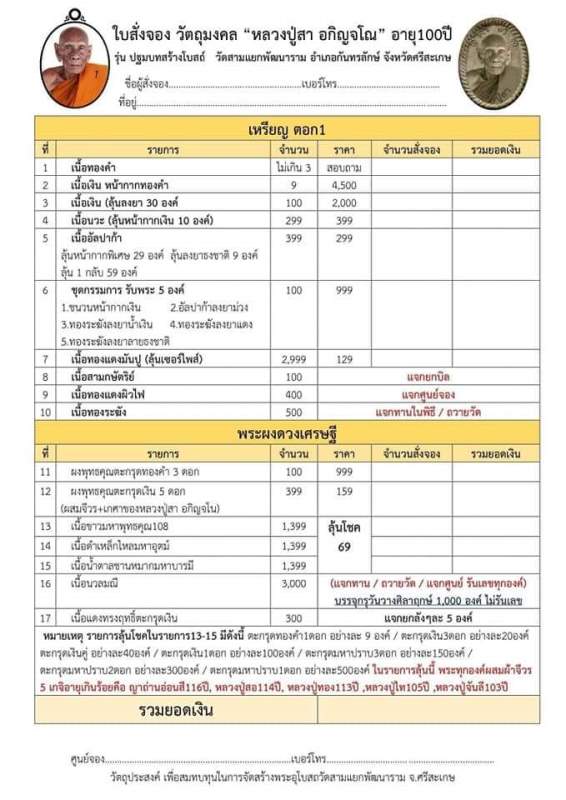 ดำริให้พิมพ์นี้คือรุ่นแรกสร้างพระอุโบสถ