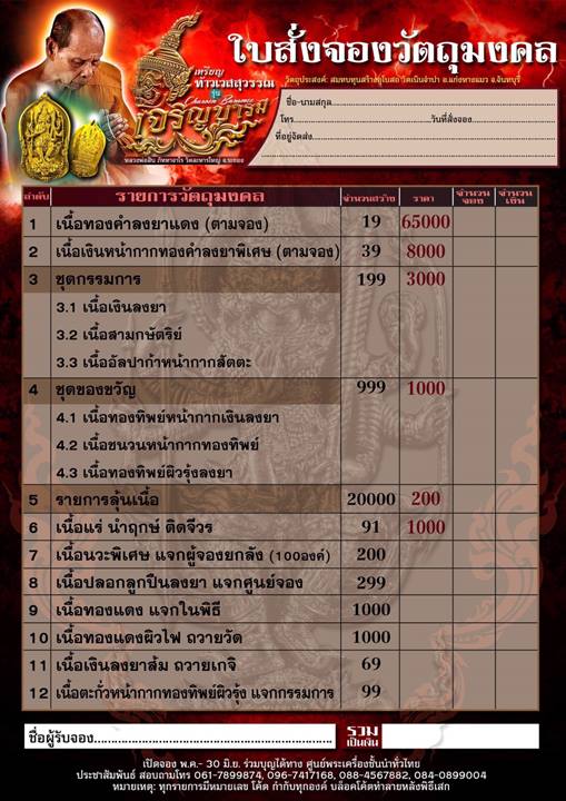 รายการ 6.เนื้อแร่ นำฤกษ์ ติดจีวร ราคาจอง 1,000.-บาท มียอด= 2