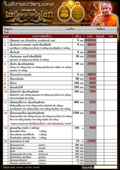 รายการ 13.ชุดของขวัญ (รับพระ 3 เหรียญ) ราคาจอง 900.-บาท มียอด = 10