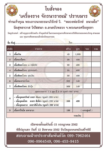 "งานบุญ เครื่องราง จักรนารายณ์ รุ่น ปราบมาร"