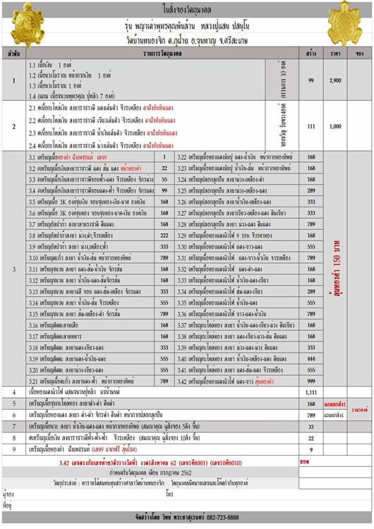 รายการ 1.ชุดกรรมการ (รับพระ 10 เหรียญ) ราคาจอง 2,900.-บาท มียอด= 2